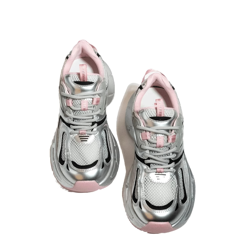 • Silver Grey Retro Women's Shoes Mesh Top Breathable Casual Shoes Sneakers Pink