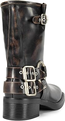 Women S Mid Calf Boots Square Toe Motorcycle Boots With Buckles Women S Motorcycle Boots Low Block Heel Design