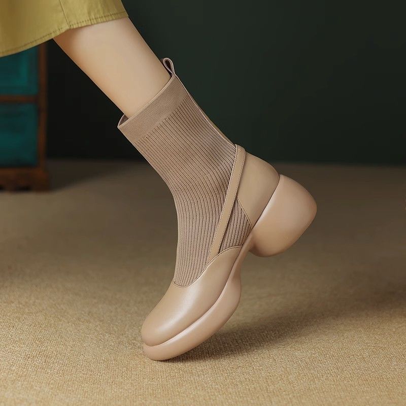 • Thick-Soled Elastic Martin Boots For Women Soft Leather Wool Platform Socks Slim Boots 2024 New Autumn And Winter High-Heeled Short Boots