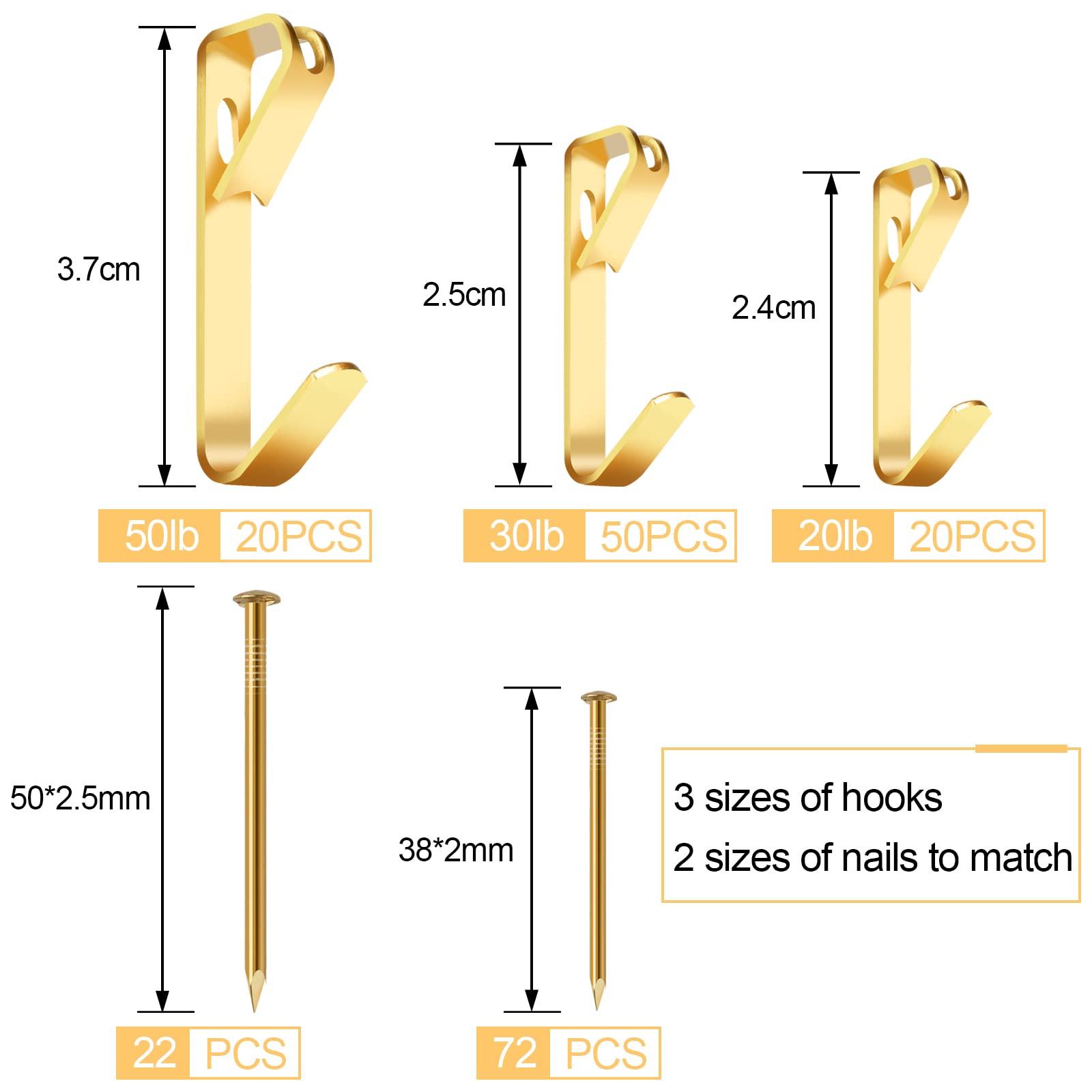 Reliable thickness: The main body of the picture hanger is thickened, which is more durable. If the wall is hard enough, it is good to hang some light things. The nails are not easy to bend, and it is easy to hang the sundries firmly on the wall. The picture hanger is small and practical, easy to recycle, and only leaves a small hole.