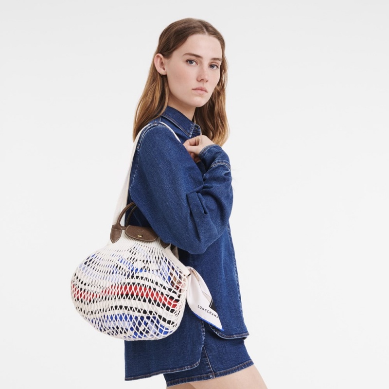 / White Longchamp Le Pliage Filet L Mesh Bags Women's Handbags