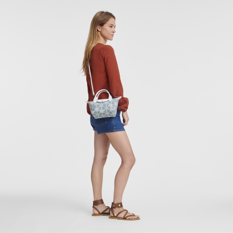 Blue White Longchamp Le Pliage XS Women's Handbags
