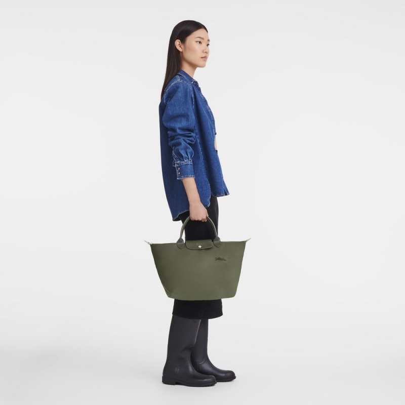 / Army Green Longchamp Le Pliage M Women's Handbags