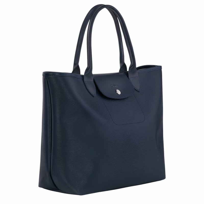 Navy Longchamp Le Pliage City L Women's Handbags