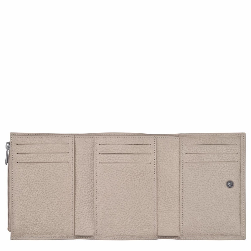 Beige Brown Longchamp Roseau Essential Women's Wallets