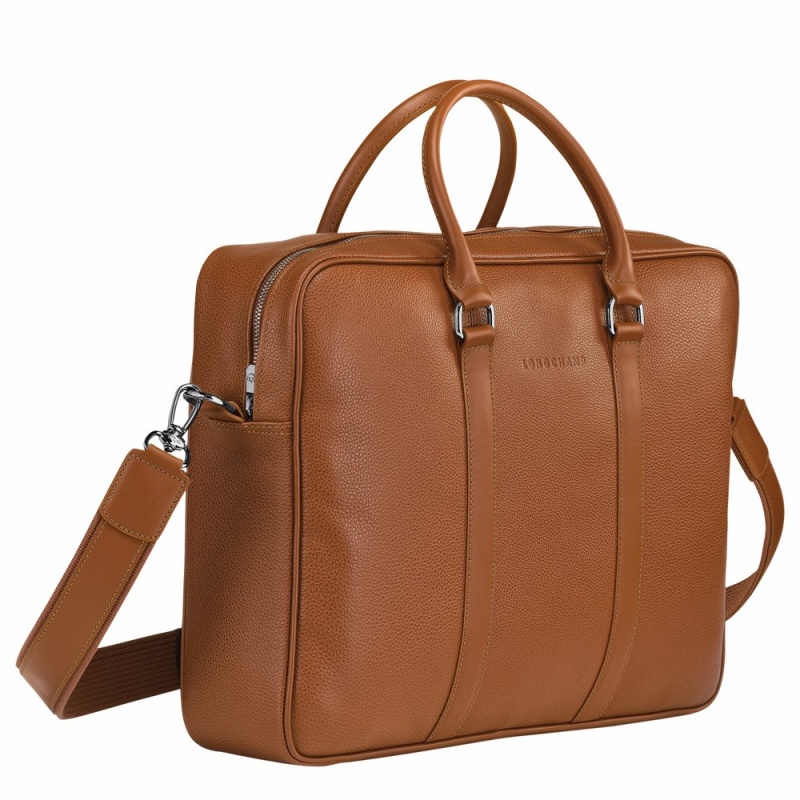 / Coffee Longchamp Le Foulonne M Men's Briefcase Bags