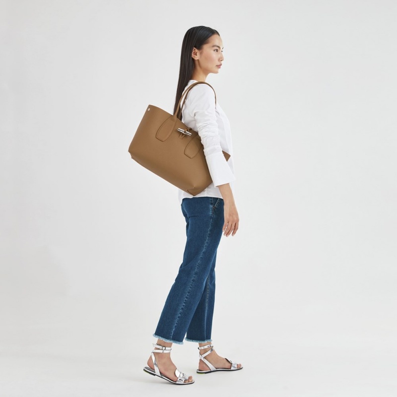 / Brown Longchamp Roseau L Women's Shoulder Bags