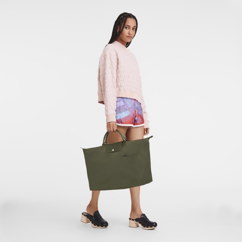 / Army Green Longchamp Le Pliage S Men's Travel Bags
