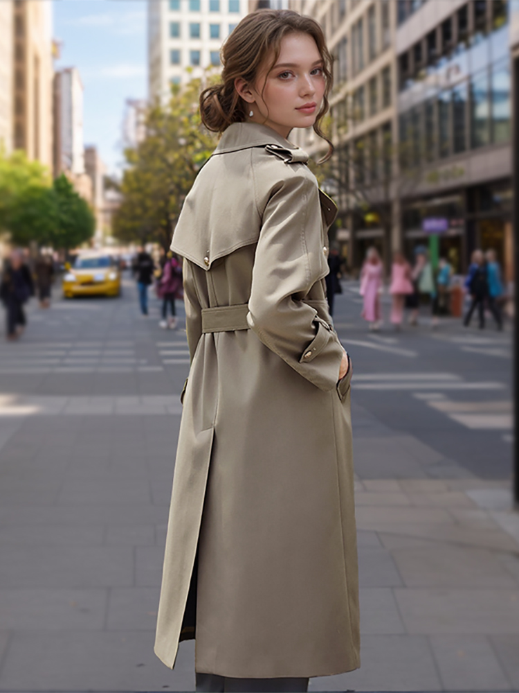 • 2024 Spring Fall Over The Knee Mid-Length Classic Trench Coat Women's Gray