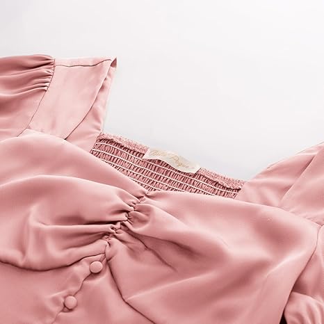 2024 Summer Puff Short Sleeve A-Line Satin Midi Dress 1950s Vintage Party Swing Dresses