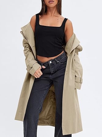 Made from premium 100% polyester, this womens windbreaker is extremely durable. Carefully crafted stitching adds a touch of sophistication. The lapel and button closure are both stylish and windproof. Use the belt to easily switch between casual and feminine. Product Reviews
