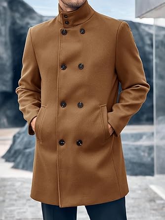 Wool blend elegant men's coat, made of high quality fabric, this winter mid-length double-breasted coat is designed to keep you warm and comfortable in the cold season, soft to the touch, warm and thick fabric, durable. Product Reviews